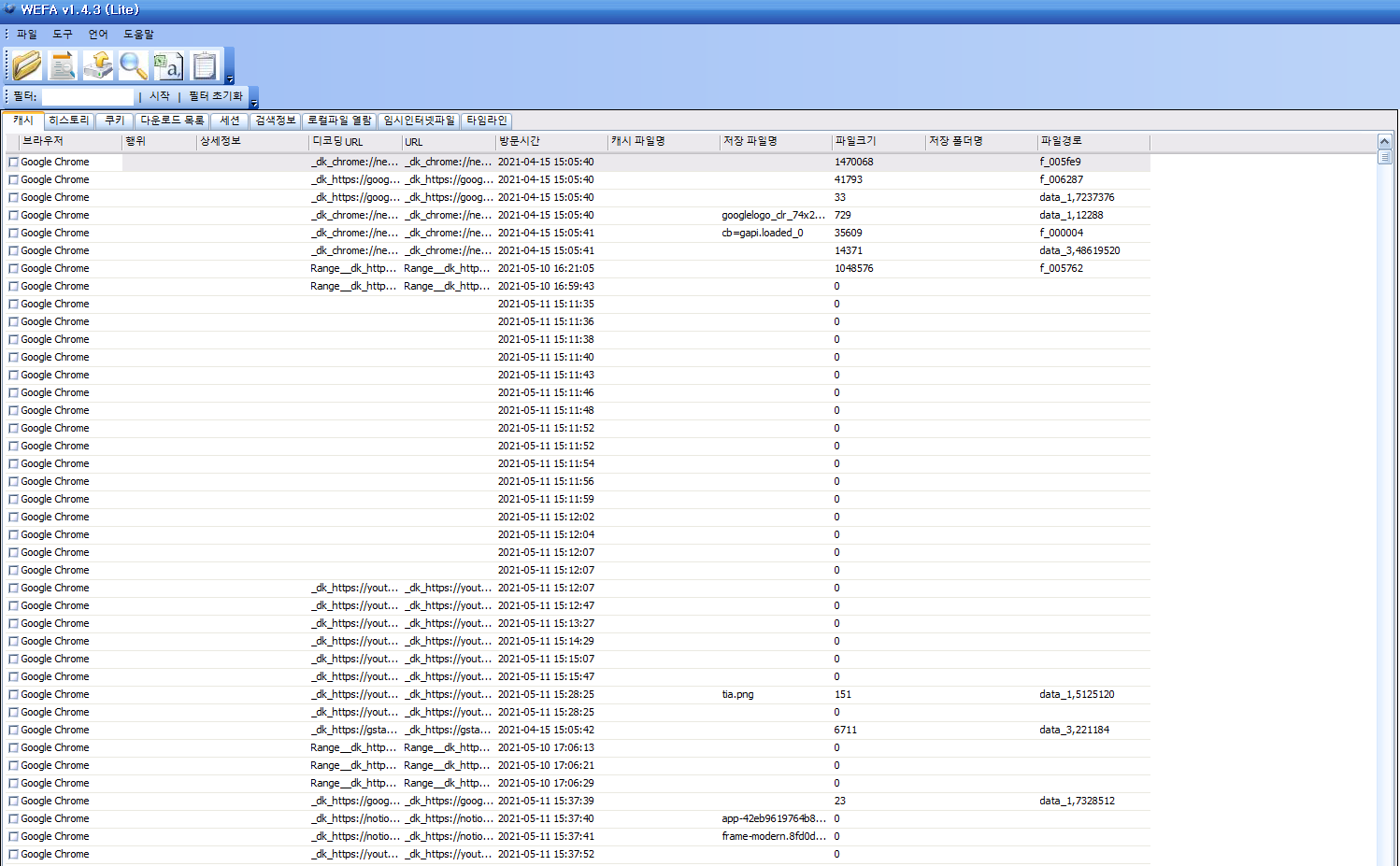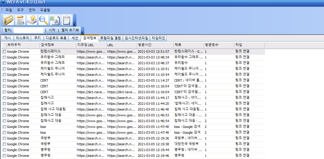 WEFA는 고려대 DFRC에서 만든 웹 히스토리를 분석하는 툴입니다.