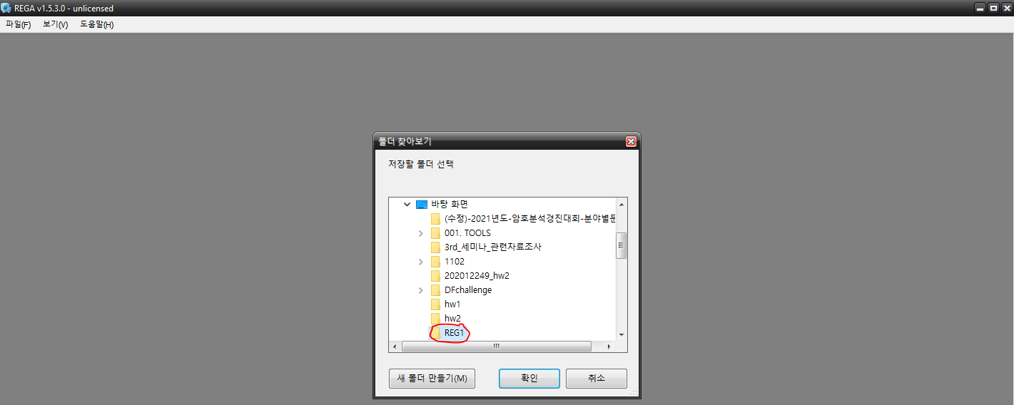 REGA를 처음 실행하면 경고창이 뜰 수 있습니다. 화살표를 확장해 실행 버튼을 누루면 됩니다. 처음 들어갔을때 REGA 모습인데, unlicensed라고 되어있는 것을 보면 lite버전인 것 같습니다. 정식 버전을 구하려면 DFRC에 문의해보아야 할 것 같습니다.